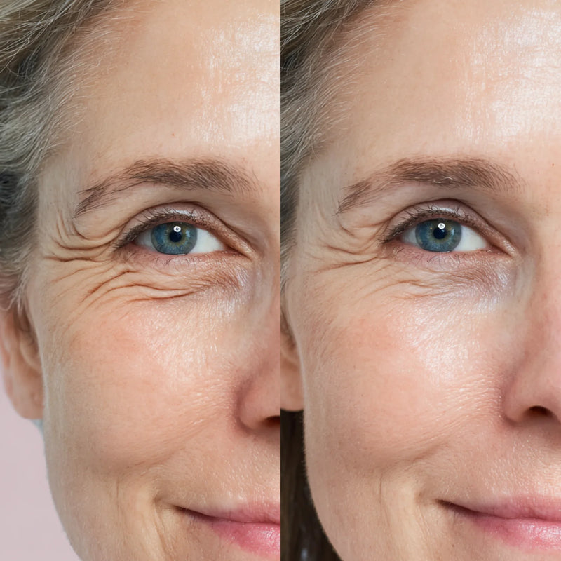 ראו הפחתה ניכרת בקמטים מתחת לעיניים.