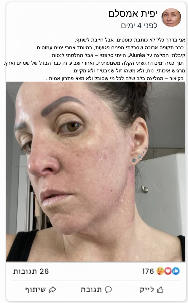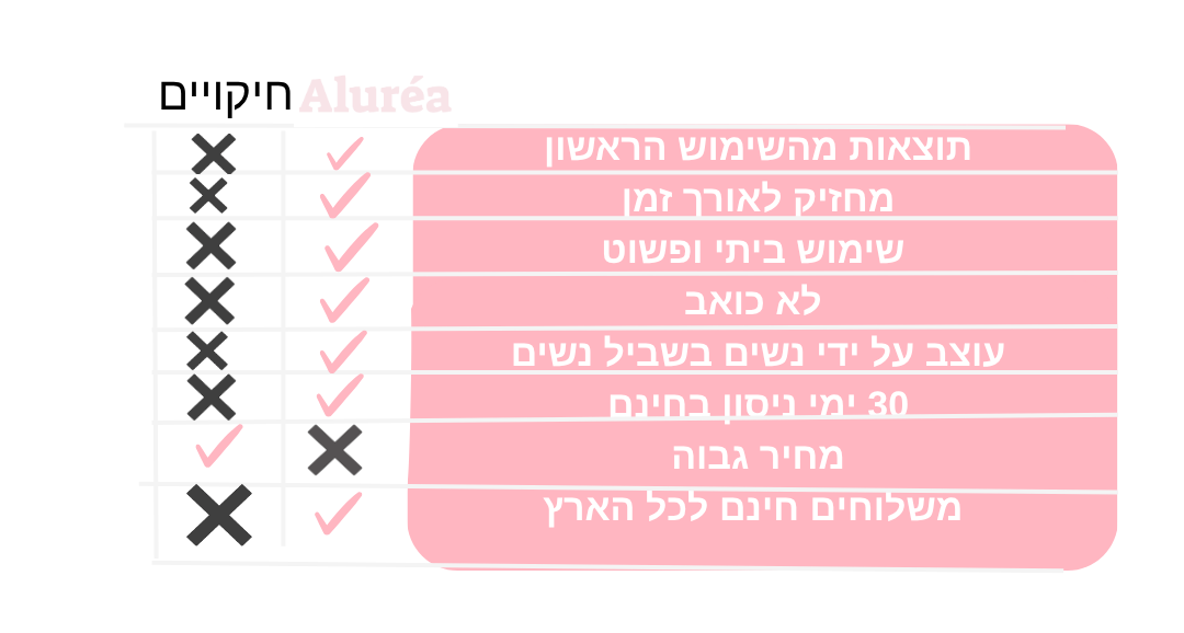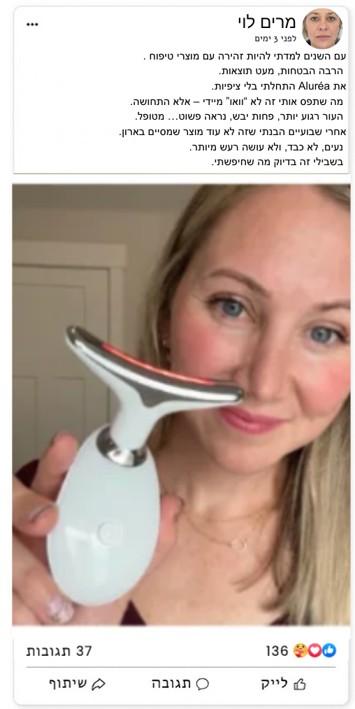 המכשיר של Aluréa מעניק לעור שלך מראה מתוח, חלק ומטונן יותר – בקלות ובנוחות.